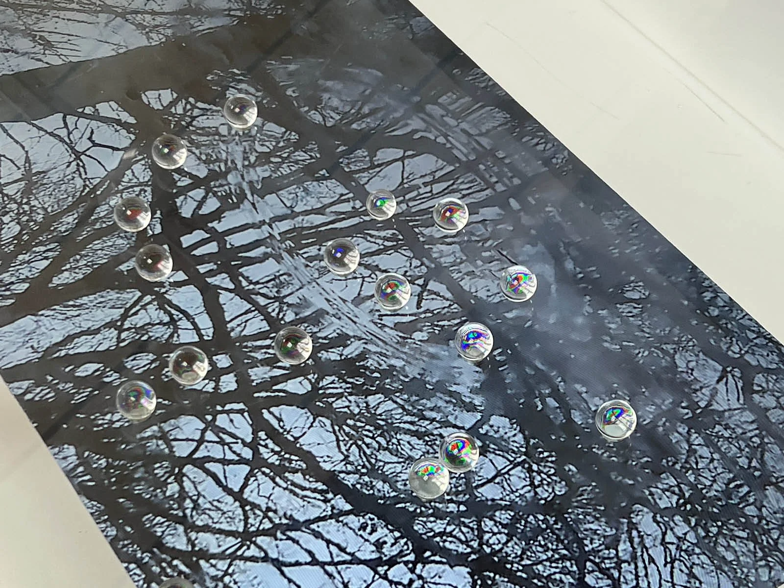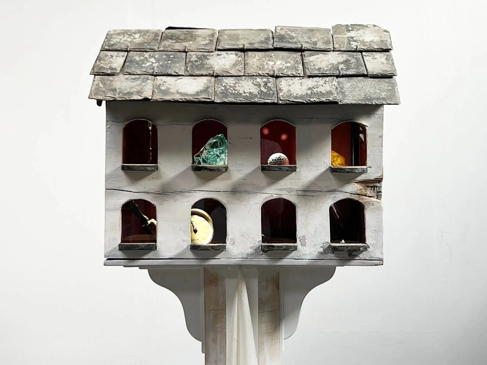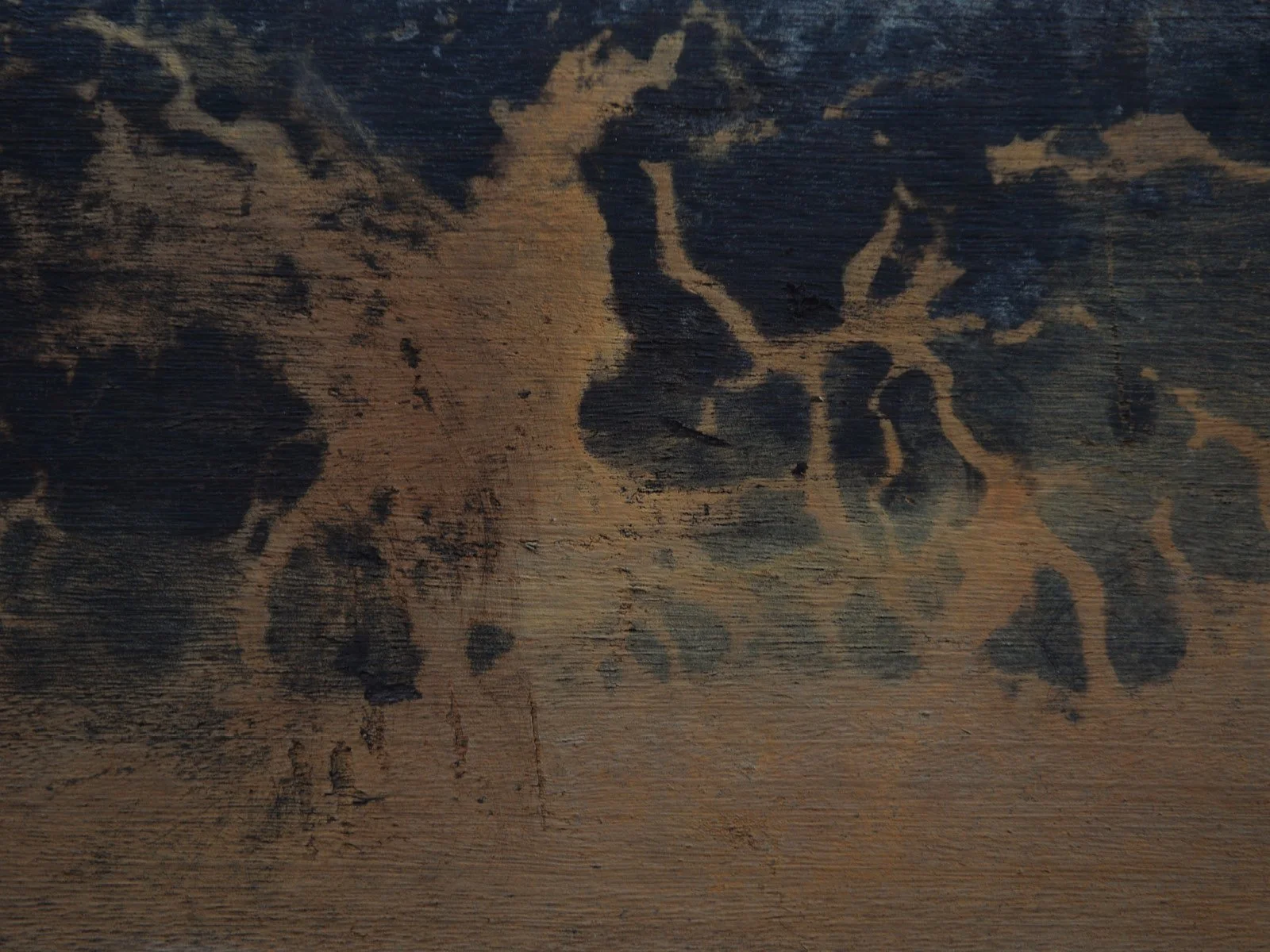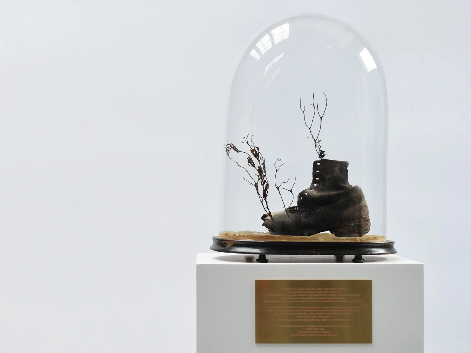 His work, across media, is playful and inquisitive. He takes objects, often the forgotten or thrown, and thinks of them as another thing or place. An old football, a world, or the veins of a leaf being all the rivers of the world.